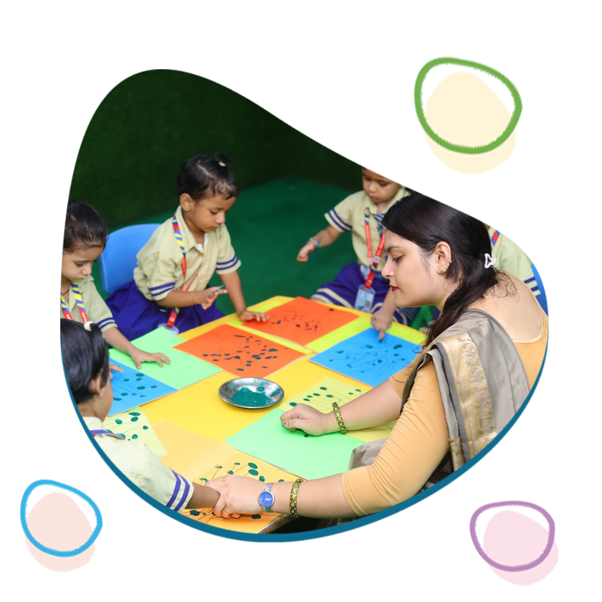 Children explore colours, sounds, and stories through guided play in safe, joyful classrooms built for early learning.